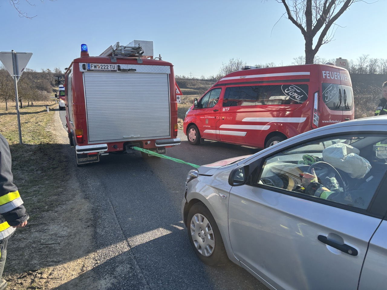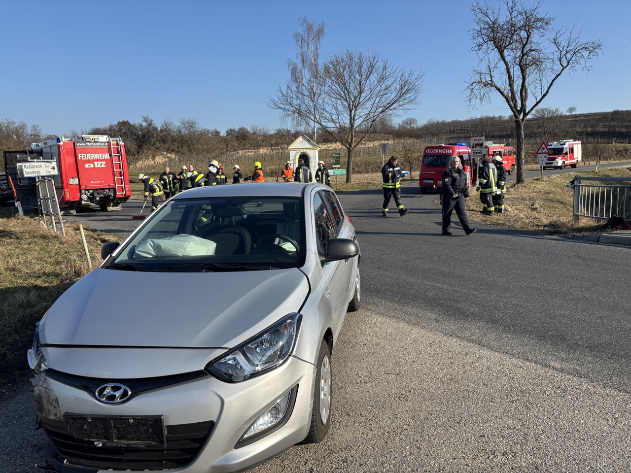 Aus bisher unbekannter Ursache stießen im Kreuzungsbereich zwischen Großriedenthal, Ottenthal und Neudegg zwei Fahrzeuge zusammen. Glücklicherweise wurde bei diesem Zusammenstoß niemand verletzt. Nach der Unfallaufnahme durch die Polizei konnte die Feuerwehr Neudegg gemeinsam mit der Feuerwehr Ottenthal mit den Aufräumarbeiten beginnen. Dabei wurden auslaufende Betriebsmittel gebunden und Fahrzeugteile von der Straße entfernt.